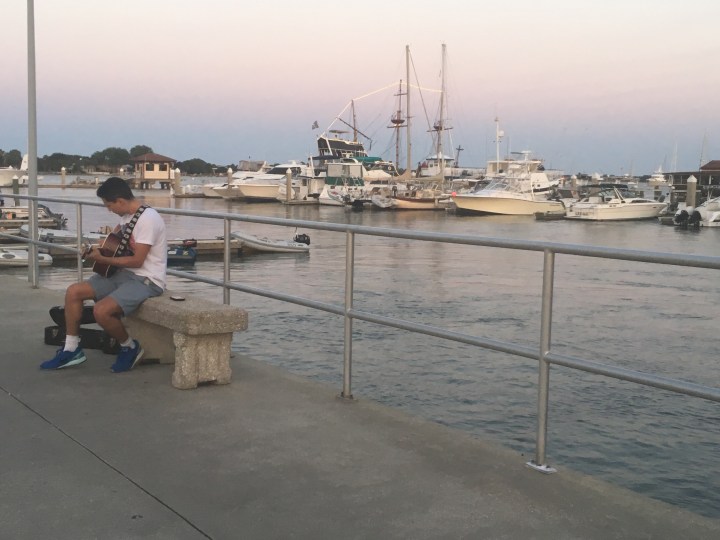 It was just him with his guitar on the dock of a beautiful town singing; his audience was a dog barking, a seagull flying above him, expressing their own sounds which for me was admiration for his talent, and myself. In an instant I thanked God because he put music to what was already something special, and I felt loved in detail because music is something I love and enjoy; it is also what I do for God.